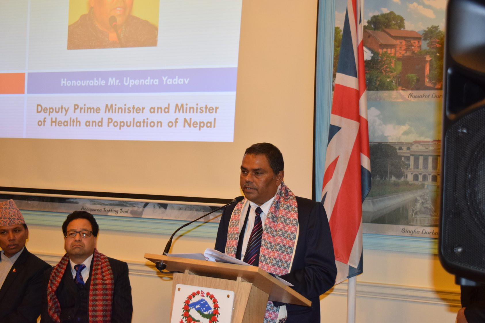 उपप्रधानमन्त्री तथा स्वास्थ्य एवम् जनसंख्या मन्त्री उपेन्द्र यादव र वन तथा वातावरण मन्त्री शक्तिबहादुर बस्नेतको सम्मानमा आयोजित समारोहका बिच बुधबार सांझ दूतावासमा उक्त कार्यक्रम गरिएको थियो । नेपाल ब्रिटेन स्वास्थ्य सहयोग विषयक उक्त सेमिनारमा नेपालको स्वास्थ्य विकासका लागि दुई देशबीचको सहयोगबारे विभिन्न प्रिजेन्टेसन गरिएका थिए ।