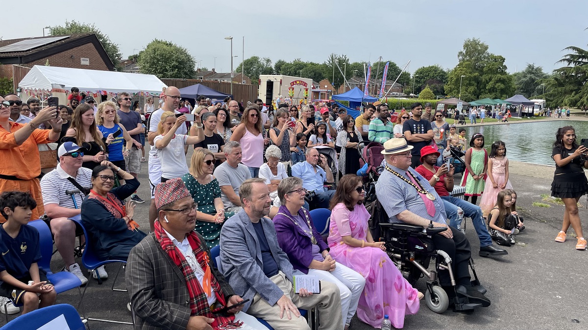 बिहान दस बजेदेखि सुरू भएको उक्त कार्यक्रमको सुरूमा आ-आफ्नो देशका राष्ट्रिय एवं जातीय पोशाक लगाएका समूहले स्थानीय सांसद मारिया मिलर, नेपाली राजदूतावास, बेलायतका नियोग उपप्रमुख रोशन खनाल, बेजिंगस्टक तथा डिन काउन्सिलका मेयर डेभिड लिक, काउन्सिल लिडर डा पल हार्भे, काउन्सिलरहरूसहित भएर सांस्कृतिक परेड गरेका थिए।