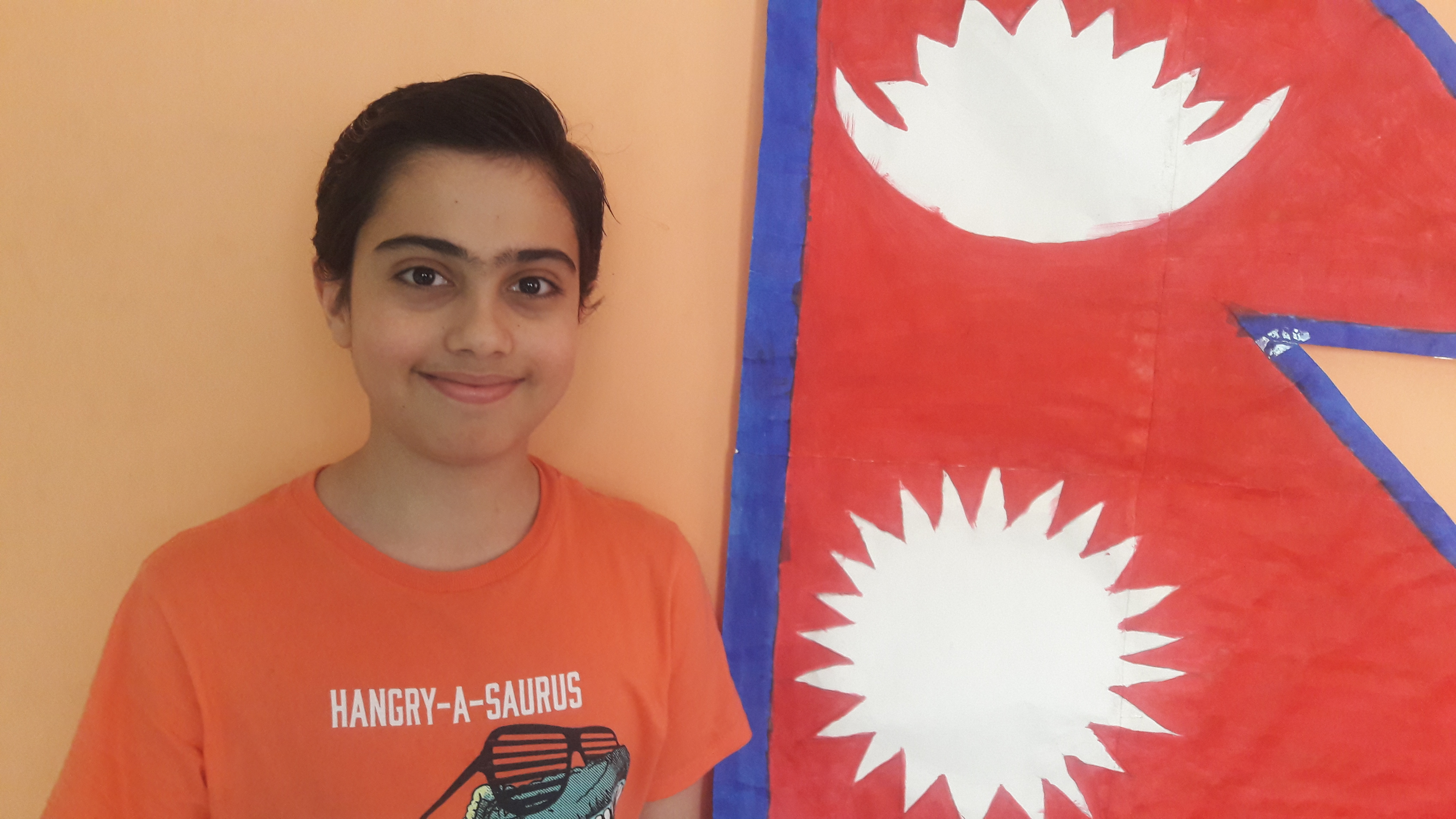 यो लकडाउनको बेलामा साथीहरूले पनि धेरै नयाँ कुराहरू सिक्नुभएको छ होला। मैले पनि कथा कविता पढ्ने, गीत गाउने, फिल्म हेर्ने अनि केही गेम खेल्ने र चित्र बनाउने काम गरेँ। हाम्रो देशको बारेमा यी कुराहरू सुनेपछि मलाई आफ्नो देशको झन्डा बनाउन मन लाग्यो र स्केच प्याडलाई जोडेर वाटर कलरले नेपालको ठूलो झन्डा बनाएको छु र लिभिंग रूममा राखेको छु।