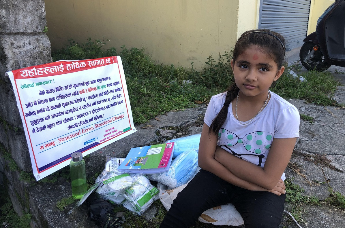 अब आफैंले मेरा साथीहरूलाई सहयोग पुर्याउन व्यापार गर्छु भन्ने सोचेँ। बाबाआमासँग सल्लाह गरेँ। अनि त्यो दक्षिणाको पैसाले मास्क मगाइदिनु भनेँ। बाबाले मगाइदिनुभयो। मास्क नै मैले किन रोजेँ भने अहिले कोरोनाको सबैतिर डरैडर छ। कोरोनाको शत्रु भनेकै मास्क हो। मास्क फेरि सफा-सस्तो-सजिलो सहज सबैलाई चाहिने सानो र सरल हुन्छ। यतिखेर त मास्कले मान्छेको कोरोनाबाट ज्यानै बचाउने ठूलो औषधि पनि हो नि। अथवा मैले कोरोनाबाट बच्ने औषधि बेच्दैछु।