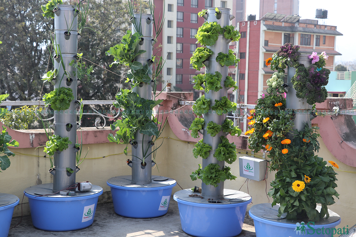 सहरी क्षेत्रमा बिनामाटो थोरै ठाउँमा खेती गर्न मिल्ने प्रविधि टावरग्यानिक्स खेती हो। यस प्रविधिमा परम्परागत खेतीभन्दा ९० प्रतिशत कम पानी प्रयोग हुन्छ।
