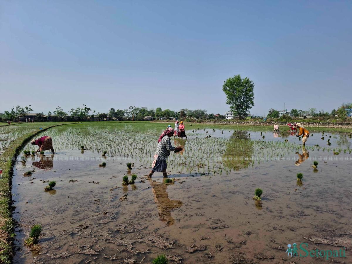तोरी र गहुँलगायतका बाली थन्क्याएपछि किसानहरूले धान लगाउन थालेका छन्। किसान यतिबेला खेतमा आली लगाउने, छेउकुना खन्ने, बीउ काढ्ने, हल चलाउने, खेत रोप्नेल लगायतका काममा व्यस्त देखिन्छन्।