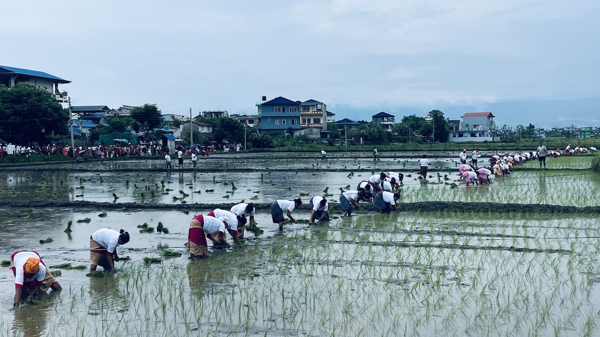 चितवन, भरतपुरको केन्द्रीय बस टर्मिनलदेखि करिब दुई किलोमिटर पर भरतपुर–९ स्थित खेतमा दर्जनौं महिला लामबद्ध भएर धान रोप्दै थिए। २२ औं राष्ट्रिय धान दिवसको अवसरमा महिला समूहहरूबीच धान रोप्ने प्रतियोगिता चल्दै थियो यहाँ।