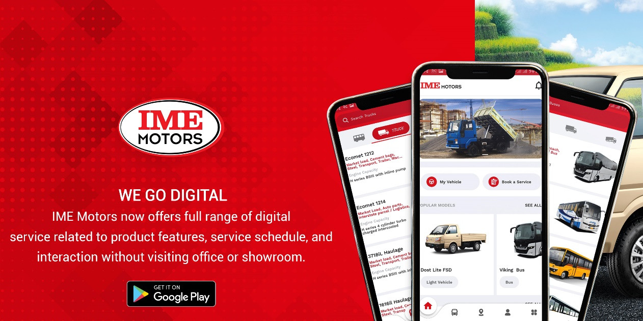 अशोक लेलैण्ड गाडीको नेपालका लागि एकमात्र आधिकारिक वितरक आइएमई मोटर्सले अन्तरक्रियात्मक मोबाइल एप संचालनका ल्याएको छ। जसको माध्यमबाट आइएमई मोटर्ससंग डिजीटल्ली सिधा जोडिन सकिने भएको छ।