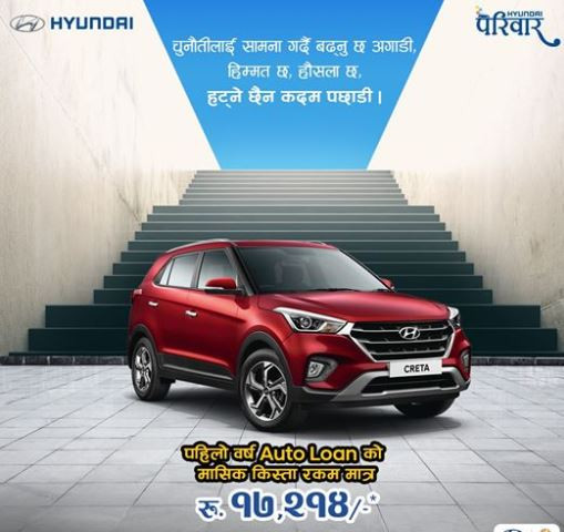 हुन्डाइ नेपालका लागि आधिकारिक विक्रेता लक्ष्मी इन्टरकन्टिनेन्टल प्रालिले क्रेटा किन्ने ग्राहकहरुका लागि नयाँ सुविधासहितको अफर ल्याएको छ।