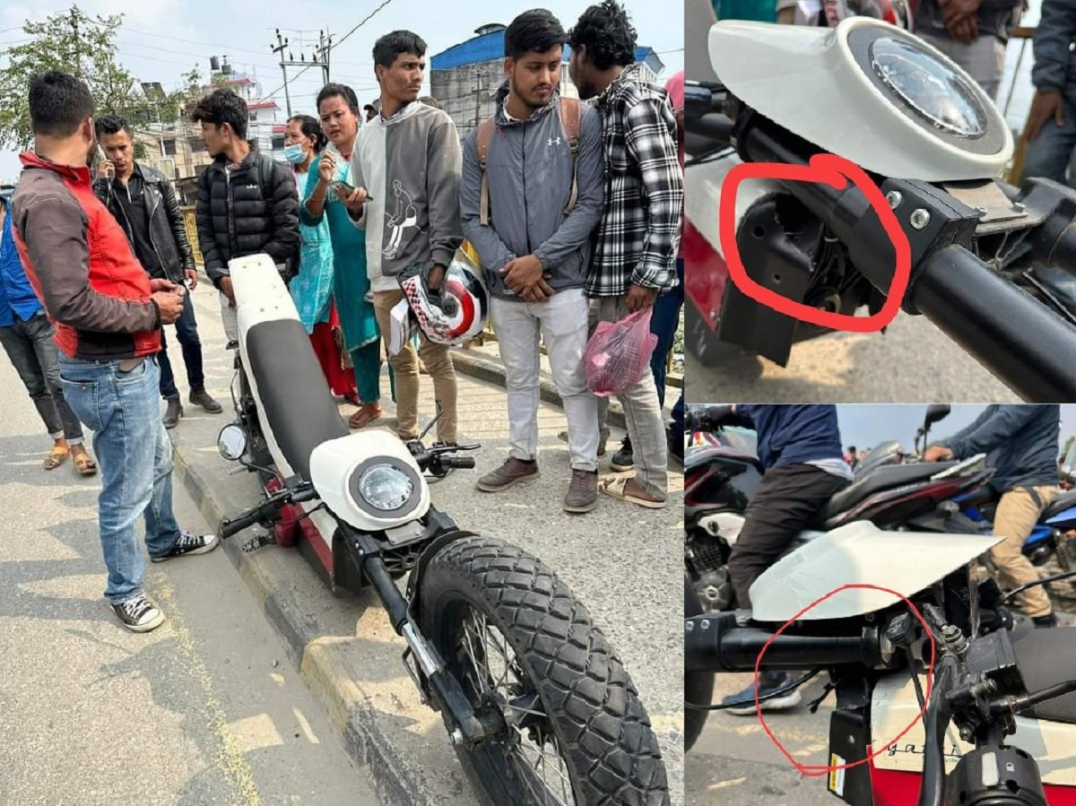 यतिबेला सामाजिक सञ्जालमा यात्री मोटरसाइकलको एउटा फोटो भाइरल छ। जसमा मोटरसाइकल गुड्दागुड्दै च्यासिस भाँचिएको भनिएको छ।