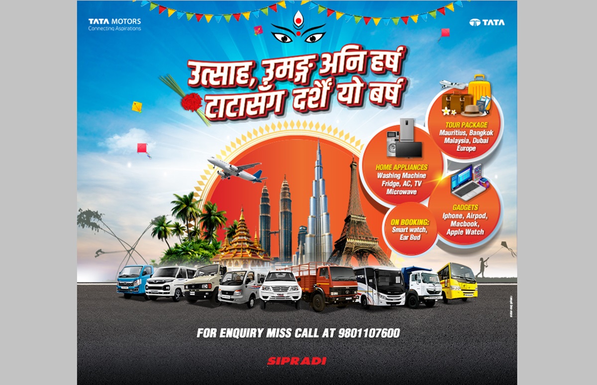 नेपालको लागि टाटा मोटर्सको आधिकारिक बिक्रेता सिप्रदी ट्रेडिङले यो वर्षको दसैंलाई लक्षित विभिन्न आकर्षक योजना सार्वजनिक गरेको छ।