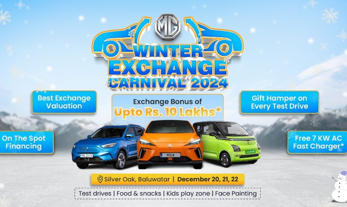 एमजी विन्टर कार्निभलमा ग्राहकले आँफूसँग भएको पुरानो गाडी दिएर एमजी, माज्दा, म्याक्सस र वुलिङको जनुसुकै कार सकिने कम्पनीले जनाएको छ।