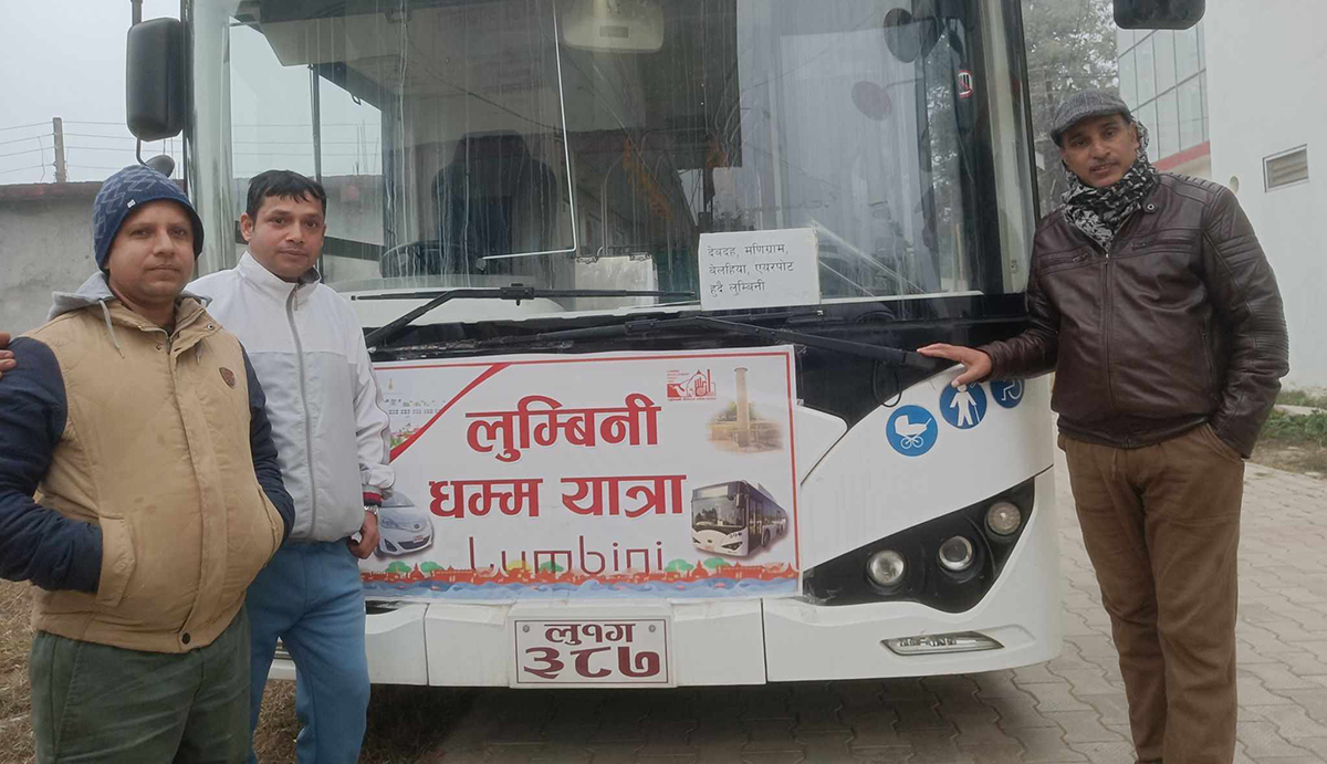 ‘लुम्बिनी ल्याइएको चार वर्षभन्दा बढी समय बितिसक्दा पनि विभिन्न कानुनी उल्झनका कारण सञ्चालनमा आउन नसकेको बसहरूको सदुपयोग होस् र आन्तरिक तथा बाह्य पर्यटकहरूलाई पनि सहज होस् भनेर धम्मयात्रा लेखेर परीक्षण स्वरूप बस सञ्चालन गरिएको हो,’ भट्टराईले भने।