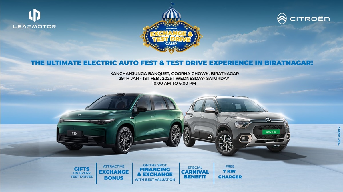 यस क्याम्पमा ग्राहकहरूले लिपमोटर सी१० र सिट्रोन इ सी३ लगायतका विद्युतीय सवारी साधनको अनुभवका साथै उत्कृष्ट एक्सचेन्ज अफर र वित्तीय सम्झौताहरू पाउनेछन्।