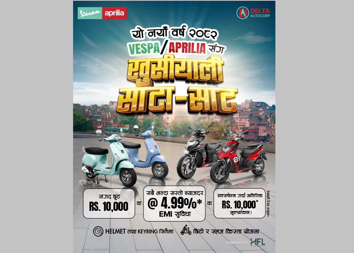 यस अन्तर्गत कम्पनीले भेस्पा/अप्रिलिया स्कुटर खरिदमा विशेष छुट र सजिलो किस्ता सुविधा तथा आकर्षक उपहारहरू प्रदान गर्ने भएको छ।