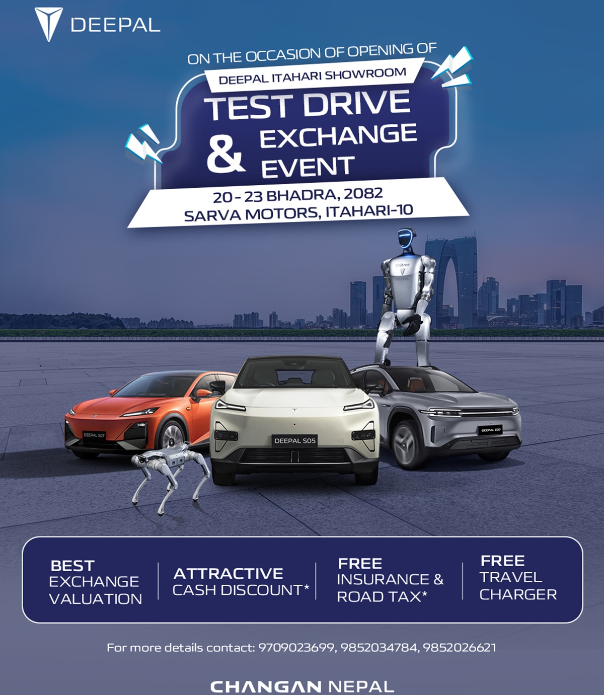 उद्घाटन हुन लागेको नयाँ शोरुममा भदौ २० देखि २३ गतेसम्म ग्राहकहरूले दिपलका अत्याधुनिक इभी मोडेल टेस्ट ड्राइभ गर्ने र दिपलका मानव रोबोट अनुभव गर्ने अवसर पाउनेछन्।
