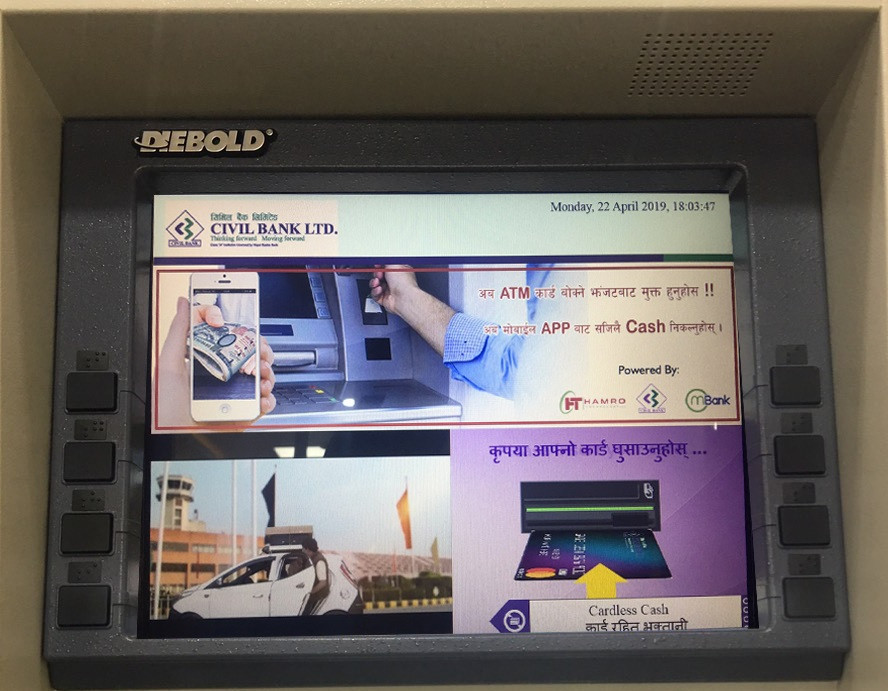 अब कार्ड बिना नै एटिएमबाट पैसा निकाल्न पाइने भएको छ। सिभिल बैंकसँगको सहकार्यमा हाम्रो टेक्नोलोजी प्रा.लि.ले ‘कार्डरहित एटिएम भुक्तानी’ सेवा प्रयोगमा ल्याउन लागेको हो। ‘एम बैंक’ एपमार्फत कम्पनीले यो सेवा सुरू गर्न लागेको हो। हाल बैंक, वित्तीय संस्था तथा सहकारी गरी २ सयभन्दा बढीले ‘एम बैंक’ एप प्रयोग गर्दै आएका छन्।