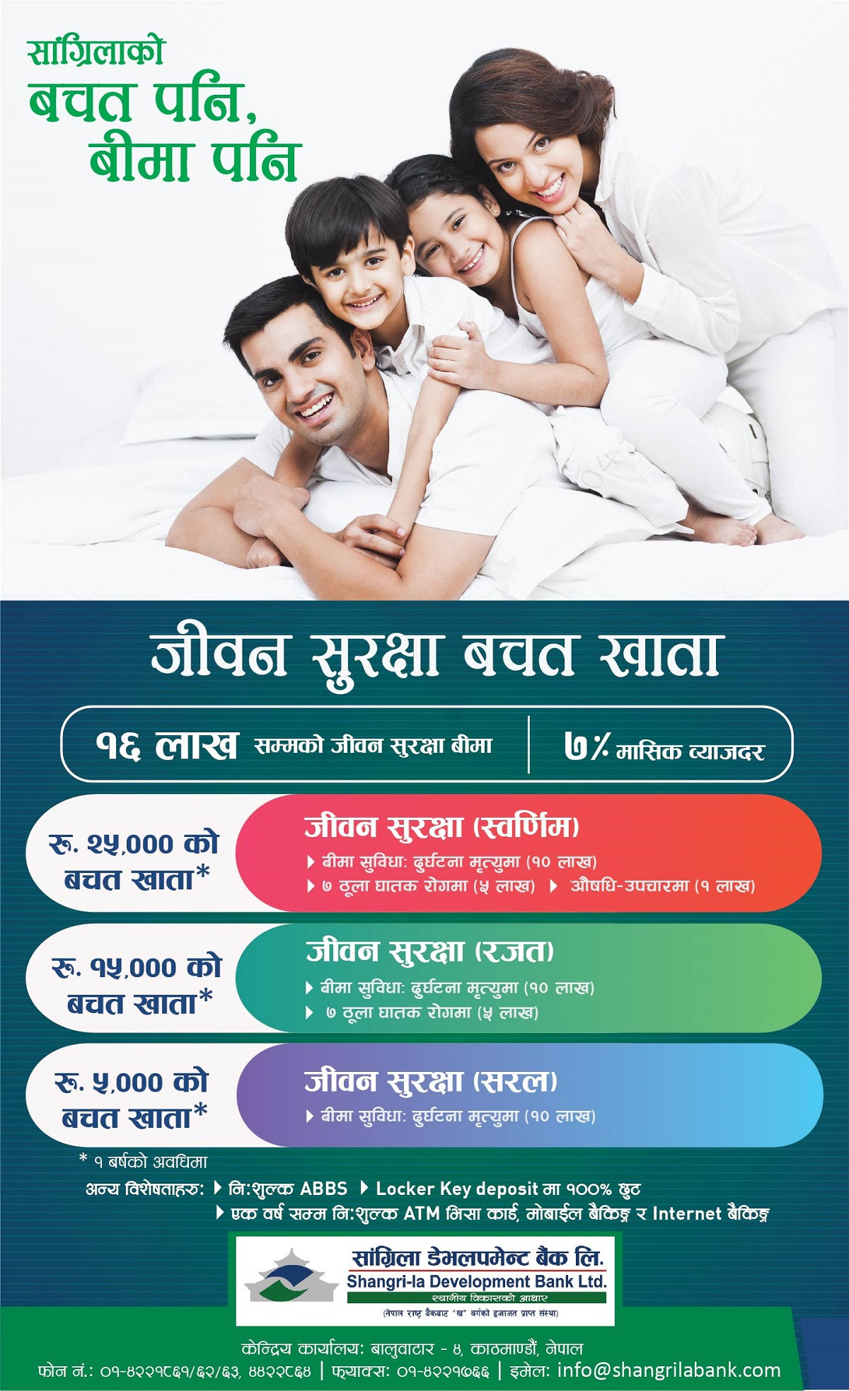 सांग्रिला डेभलपमेन्ट बैंकले ‘बचत पनि विमा पनि’ नामक नयाँ बचत खाता संचालनमा ल्याएको छ।