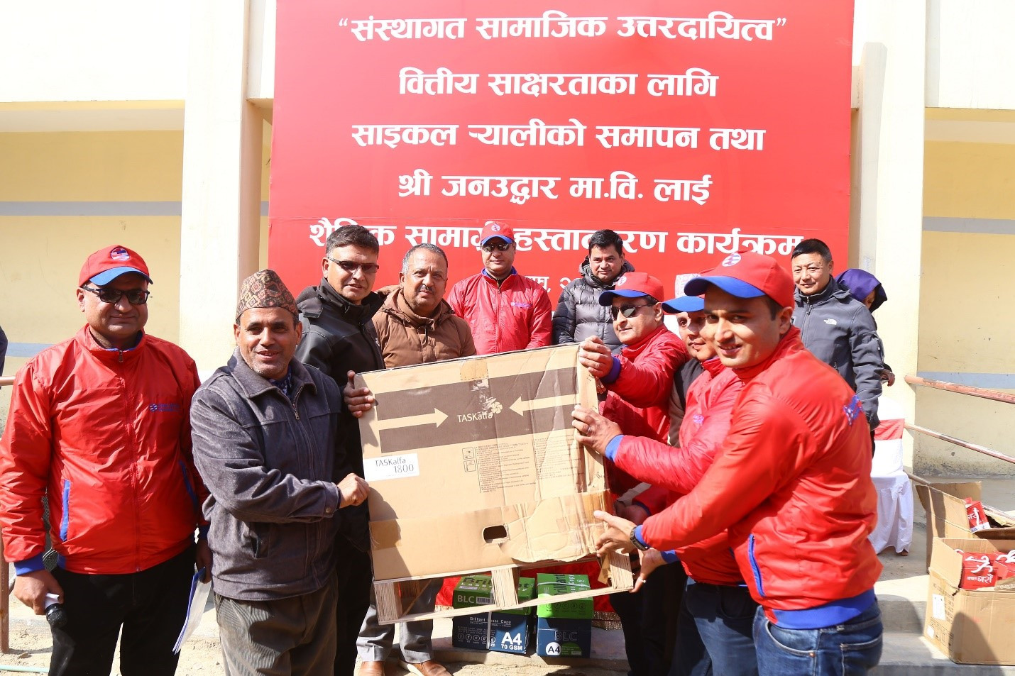 सोही अवसरमा बैंकले विद्यालयलाई १ थान हेभी ड्युटी फोटोकपी मेसिन र शैक्षिक सामाग्रीहरु प्रदान गरेको छ।