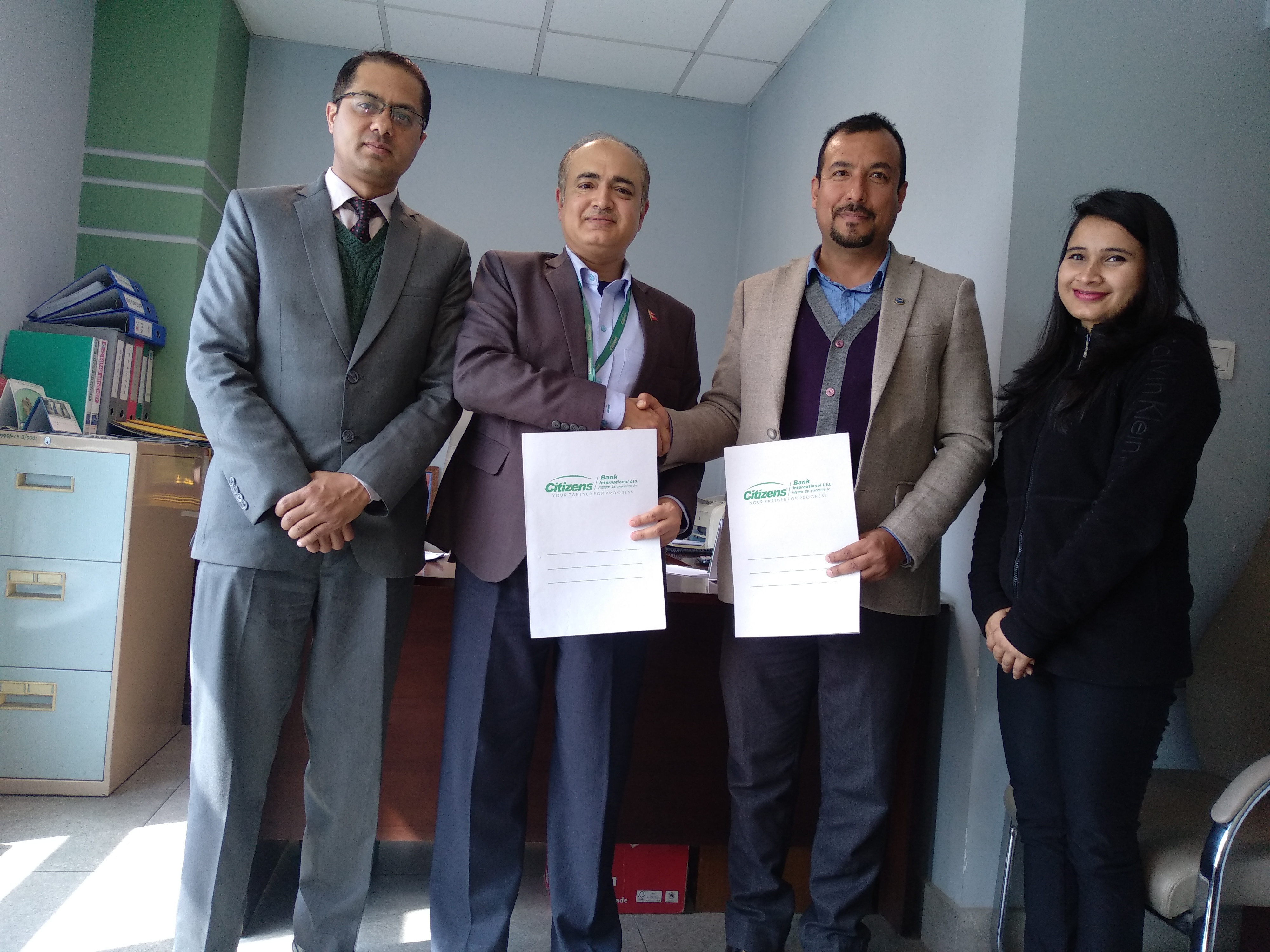 सिटिजन्स बैंक इन्टरनेसनल लिमिटेड र सिद्धार्थ बिजनेस ग्रुप एण्ड हस्पिटालिटीबीच बैंकका ग्राहकलाई सेवा शूल्कमा विशेष छुट दिने सम्बन्धी समझदारीपत्रमा हस्ताक्षर भएको छ।