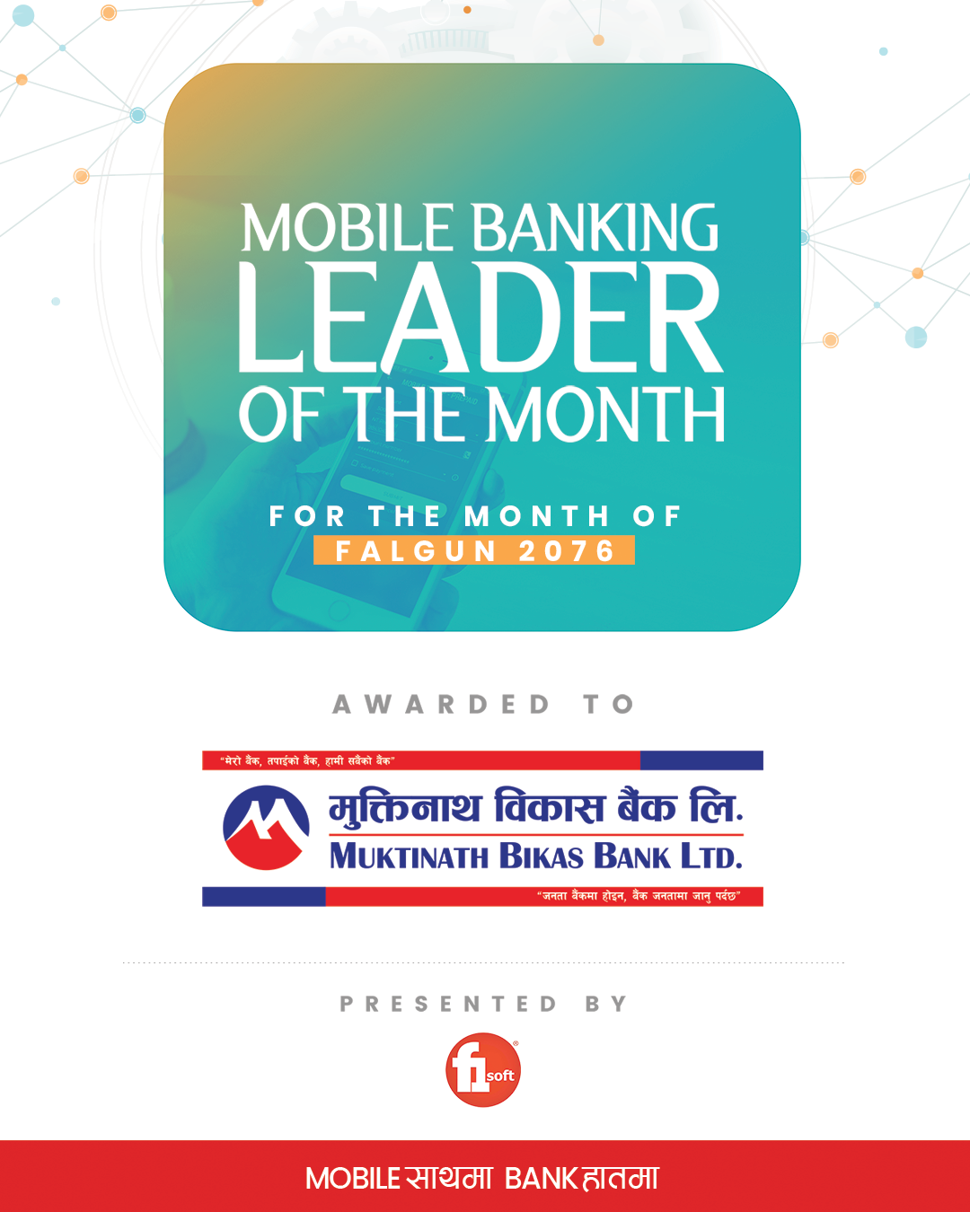 एफवान सफ्टले मुक्तिनाथ विकास बैंक फागुन महिनाको मोबाईल बैंकिङ्ग लिडर बन्न सफल भएको घोषणा गरेको छ।
