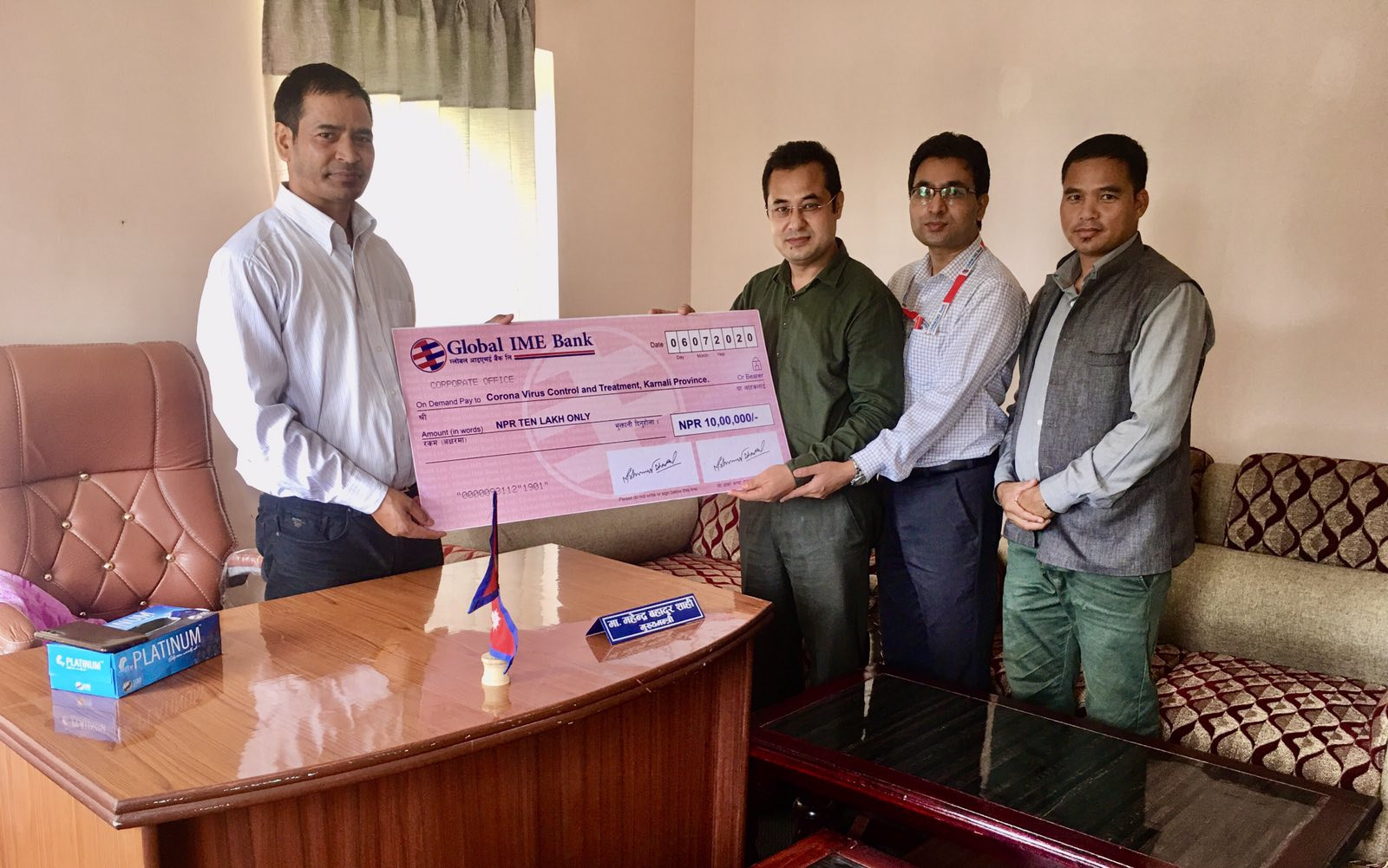 ग्लोबल आइएमई बैंकले कोरोना रोकथाम तथा नियन्त्रणका लागि कर्णाली प्रदेश सरकारलाई १० लाख रुपैंया सहयोग गरेको छ।