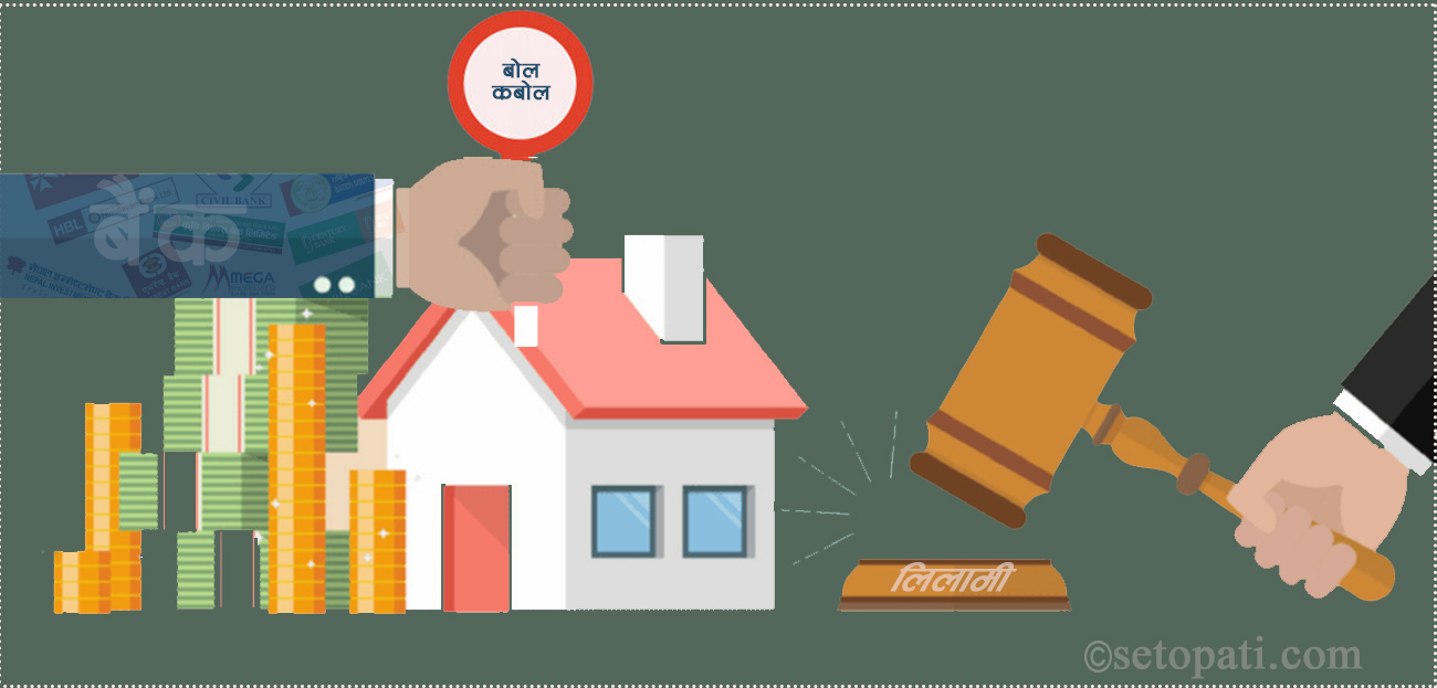 अहिले बैंकहरूले धमाधम ३५ दिनभित्र ऋणको ब्याज र साँवा रकम नतिरे सम्पत्ति लिलामी गर्नेगरी सार्वजनिक सूचना जारी गरिरहेका छन्। कोरोना असरका बाबजुद बैंकहरूले जबरजस्ती कालोसूचीमा राख्ने र सम्पत्ति लिलामीका धम्की दिने गरेको उद्योगी व्यवसायीको गुनासो छ।