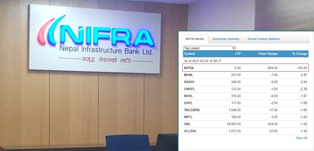 निफ्राको हिजो कारोबार बन्द हुँदा मूल्य प्रतिकित्ता ५९४ रूपैयाँ कायम भएको थियो। एक प्राविधिकका अनुसार सिस्टमले आज कारोबार खुल्दा त्यो कम्पनीको अन्तिम बजार मूल्यलाई ५९४ रूपैयाँ देखाउनुपर्नेमा 'जिरो' कायम गर्यो।