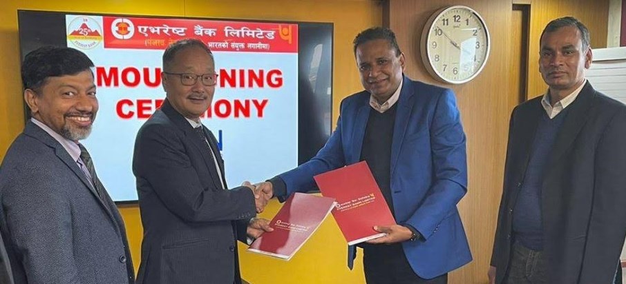 सम्झौतामा एभरेष्ट बैंकका प्रमुख कार्यकारी अधिकृत सुदेश खालिब र आइएसओएनका अध्यक्ष विवेक गुप्ताबीच हस्ताक्षर भएको छ।