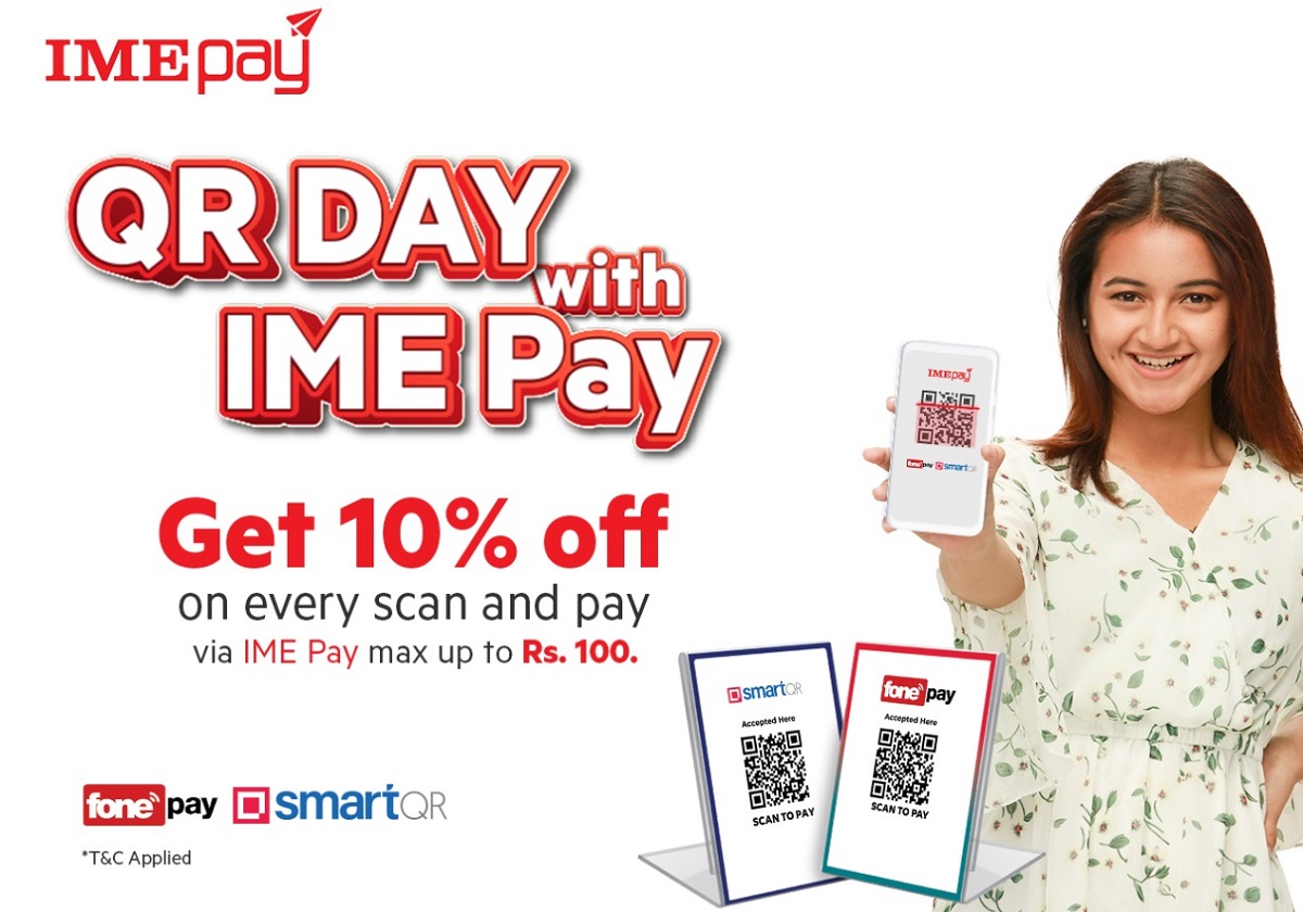 आइएमई डिजिटल सोलुसन लिमिटेडद्वारा प्रवर्द्धित 'आइएमई पे'ले प्रयोगकर्तामाझ ‘क्युआर डे विथ आइएमई पे’ अफर सार्वजनिक गरेको छ।