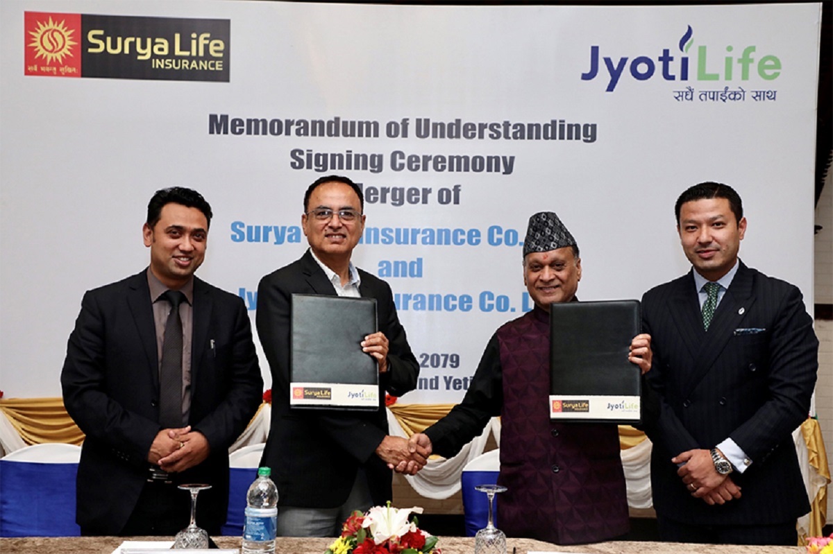 सूर्या लाइफ इन्स्योरेन्स कम्पनी र ज्योति लाइफ इन्स्योरेन्स कम्पनीबीच एक आपसमा मर्जरमा जाने सम्झौता भएको छ। सम्झौतापत्रमा कम्पनीका सञ्चालक समिति अध्यक्षले हस्ताक्षर गरेका छन्।