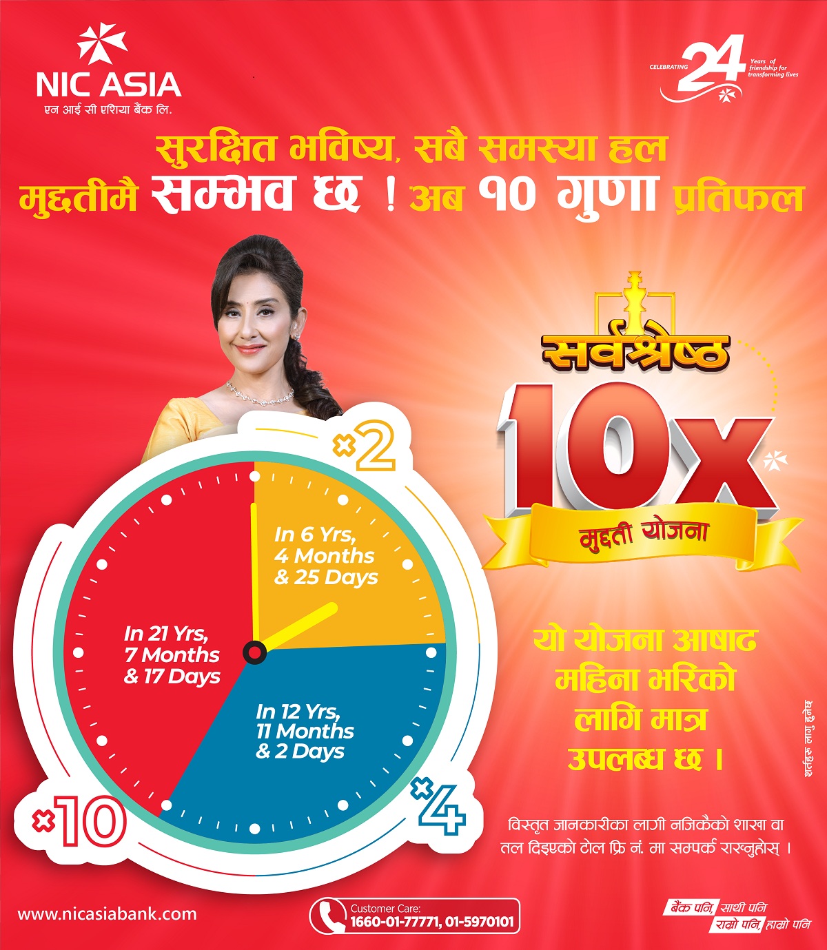 बैंकले ‘एन आई सी एशिया सर्वश्रेष्ठ १० गुणा मुद्दती योजना’ सार्वजनिक गरेको हो।