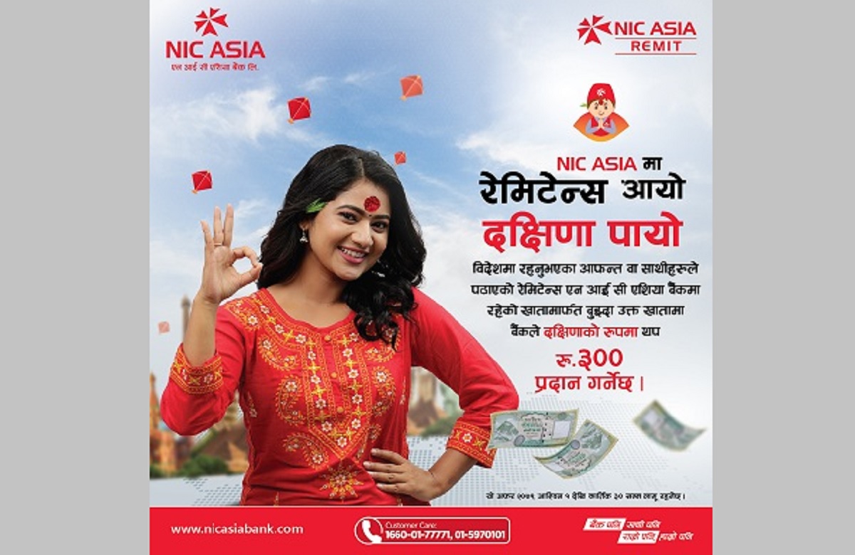 एनआइसी एशिया बैंकले ‘एनआइसी एशियामा रेमिटेन्स आयो, दक्षिणा पायो’ योजना सार्वजनिक गरेको छ।
