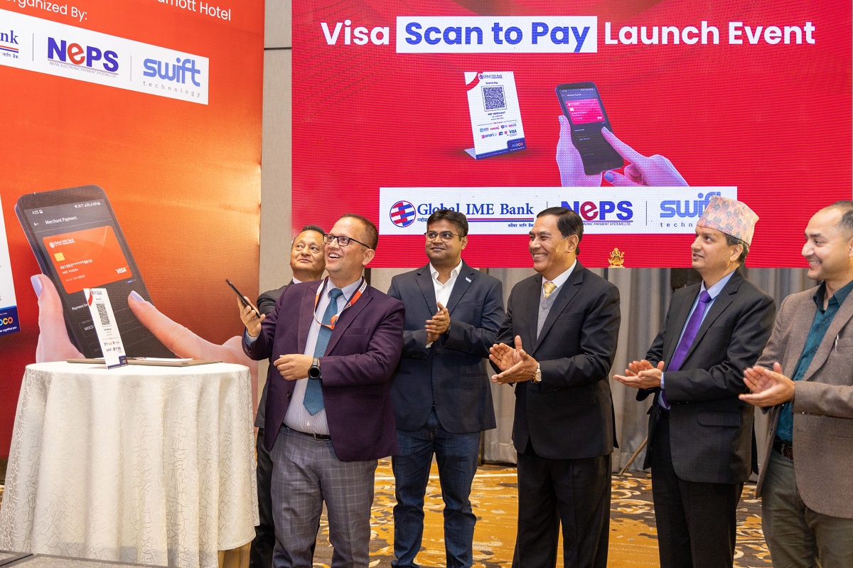 ग्लोबल आइएमई बैंकको अगुवाइमा नेपाल इलेक्ट्रोनिक पेमेन्ट सोलुशनको स्विचिङ सुविधा र स्विफ्ट टेक्नोलोजीको प्राविधिक सहयोगमा 'भिजा स्क्यान टु पे' भुक्तानी प्रणालीको शुभारम्भ गरिएको छ।