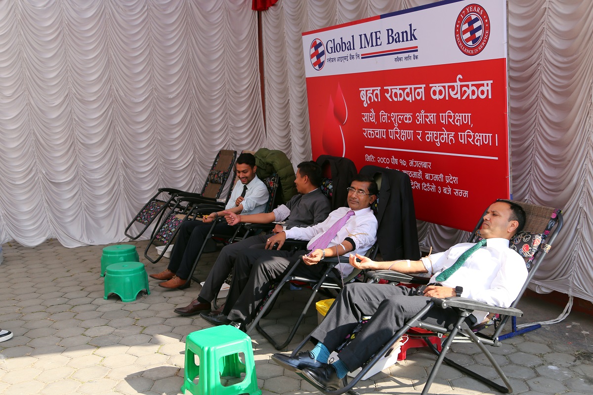 ग्लोबल आइएमई बैंकले १७औं वार्षिकोत्सवको उपलक्ष्यमा देशव्यापीरूपमा बृहत् रक्तदान कार्यक्रमको आयोजना गरेको छ।