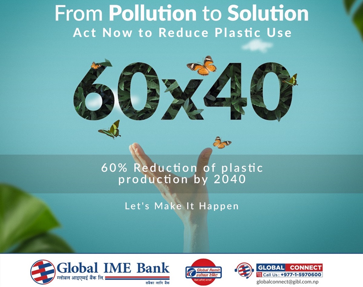 प्लास्टिकको खपत कम गरिने ग्लोबल आइएमई बैंकले 'प्ल्यानेट भर्सेस प्लास्टिक' (प्लास्टिक विरुद्ध पृथ्वी) अभियानमा ऐक्यबद्धता जनाउँदै बैंकभित्र प्लाष्टिकको खपत घटाउँदै वातावरणमैत्री दिगो अभ्यासहरूको अनुशरण गर्ने भएको छ।