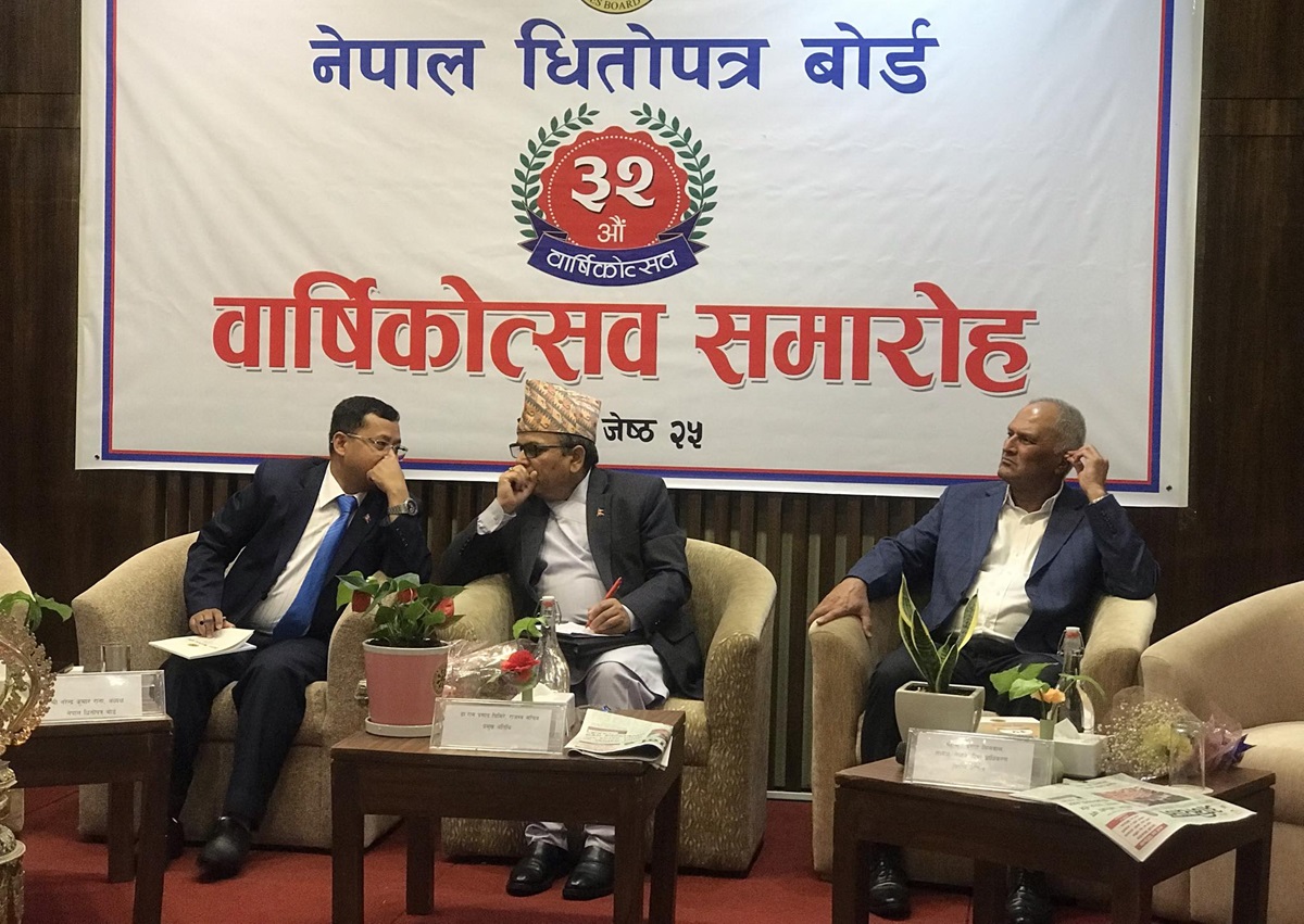 त्यस्तै, कार्यक्रममा राजस्व सचिव राम प्रसाद घिमिरेले धितोपत्र बोर्डको भवनको लागि आफूले सहजीकरण गर्ने प्रतिबद्धता जनाएका छन्। उनले अब धितोपत्र बोर्ड जोखिममा आधारित सुपरीवेक्षण मै जानु पर्ने बताएका हुन्।