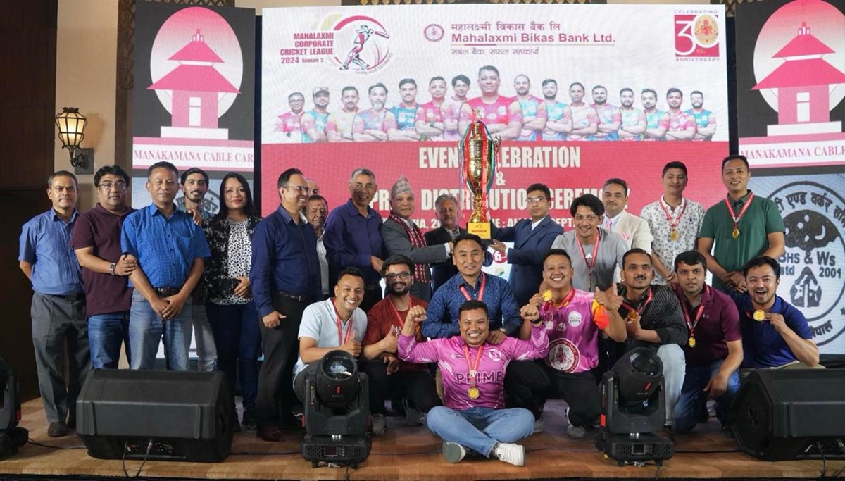 महालक्ष्मी विकास बैंकको ३०औं वार्षिकोत्सवको अवसरमा आयोजित महालक्ष्मी कर्पोरेट क्रिकेट लिग २०२४–संस्करण ३ का विजेताहरूलाई पुरस्कार वितरण कार्यक्रम सम्पन्न भएको छ।