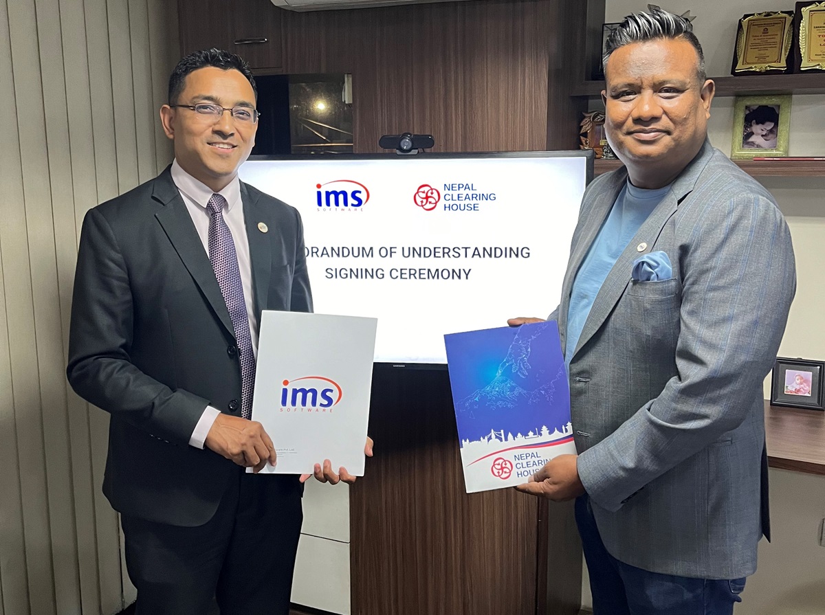 नेपाल क्लियरिङ हाउस (एनसिएचएल) र आइएमएस सफ्टवेयर आइएमएस)बीच आइएमएसको बिलिङ सफ्टवेयरमा डाइनामिक नेपालपे क्युआर इन्टिग्रेट गर्नको लागि सम्झौता भएको छ।