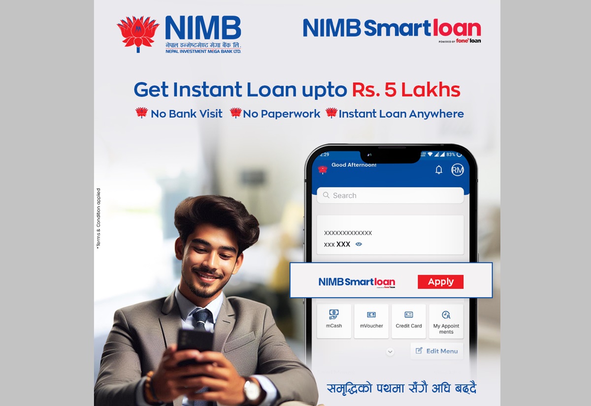 यो सुविधा मार्फत, बैंकका योग्य ग्राहकहरूले पाँच लाखसम्मको कर्जा एनआइएमबी स्मार्ट एपमार्फत बिना धितो, कागजी प्रक्रिया वा बैंकमा उपस्थित नभई सजिलै लिन सक्नेछन्।