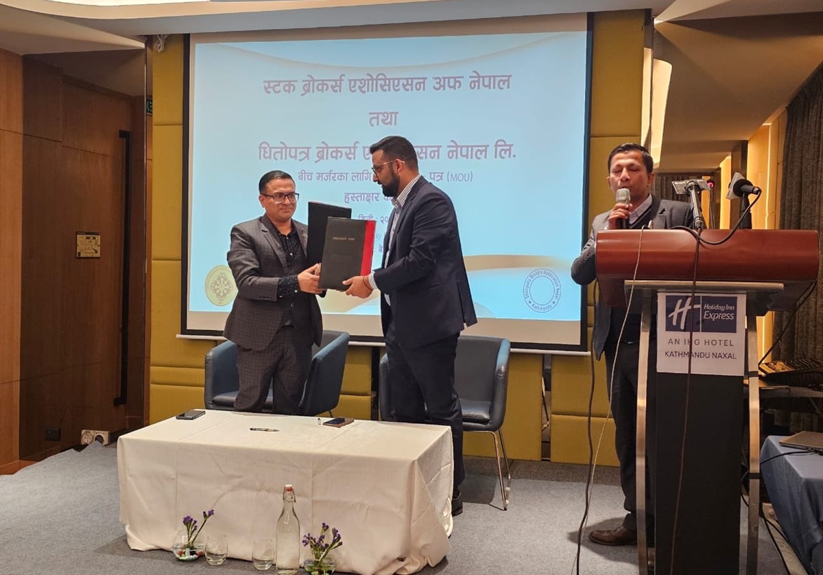 सम्झौता पत्रमा स्टक ब्रोकर्स एसोसिएसनका तर्फबाट अध्यक्ष धर्मराज सापकोटा र धितोपत्र ब्रोकर्स एसोसिएसनका अध्यक्ष सागर ढकालले हस्ताक्षर गरेका हुन्।