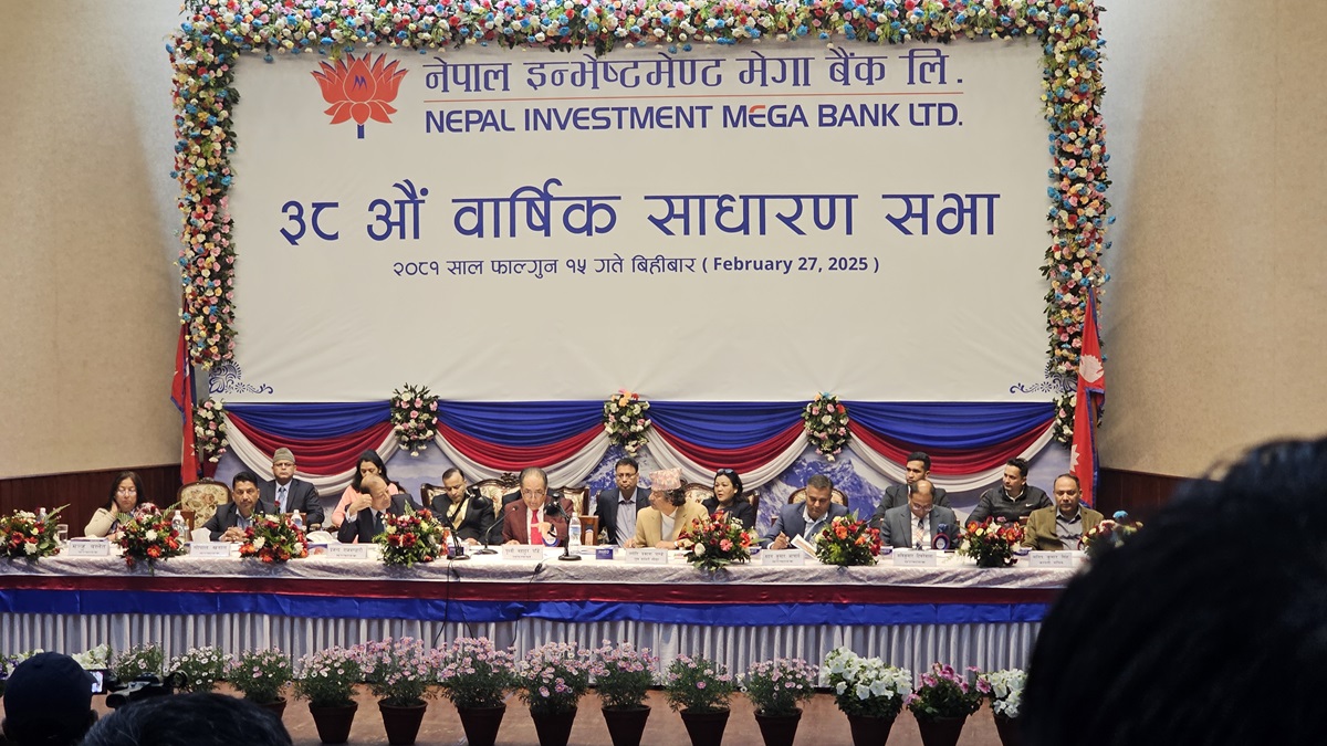 नेपाल इन्भेष्टमेन्ट मेगा बैंकले आर्थिक वर्ष २०८०/८१ को ३८औं वार्षिक साधारण सभा सम्पन्न गरेको छ।