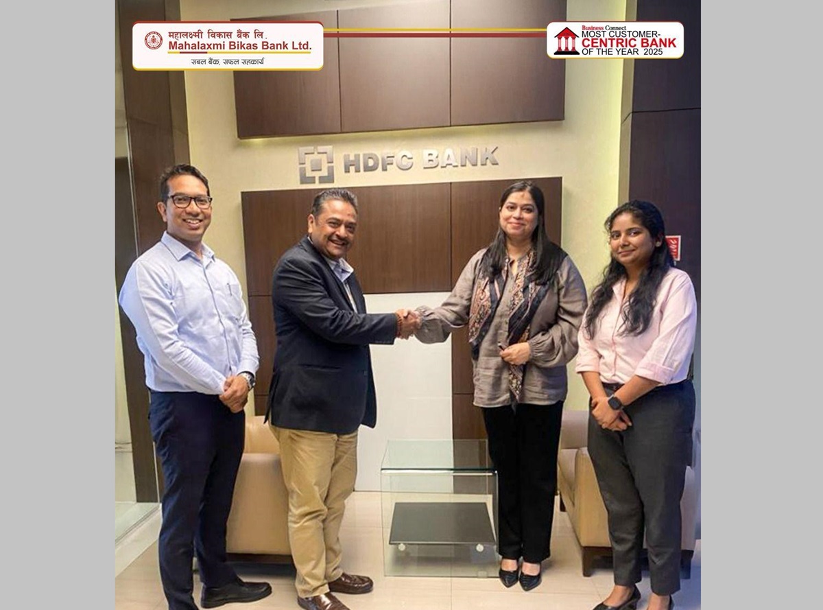 महालक्ष्मी विकास बैंक र भारतको अग्रणी वित्तीय संस्था एचडिएफसी बैंकबीच सीमा–पार वित्तीय सेवाहरुलाई प्रवर्द्धन गर्न तथा भारतबाट नेपालमा भुक्तानी सम्बन्धी कार्य गर्न समझदारी भएको छ।