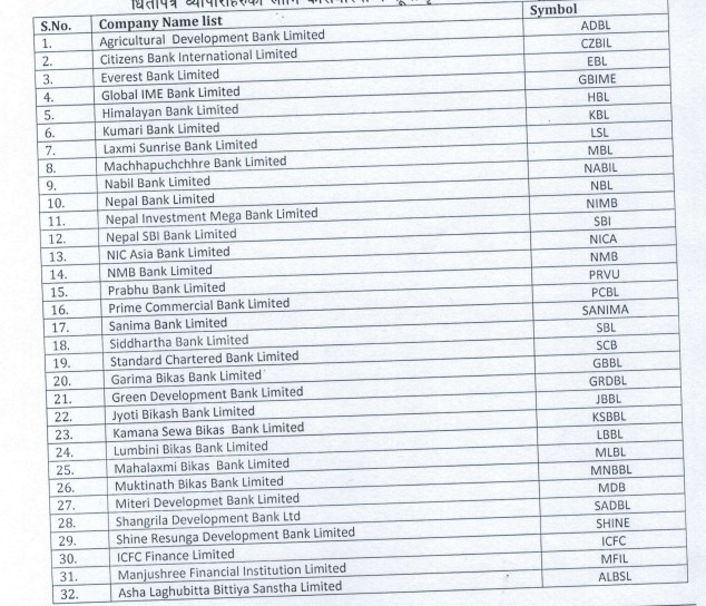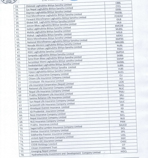 नेपाल स्टक एक्सचेन्ज(नेप्से)ले ब्रोकरमार्फत् कर्जा (मार्जिन) लिएर कारोबार गर्न सकिने कम्पनीहरूको सूची सार्वजनिक गरेको छ।