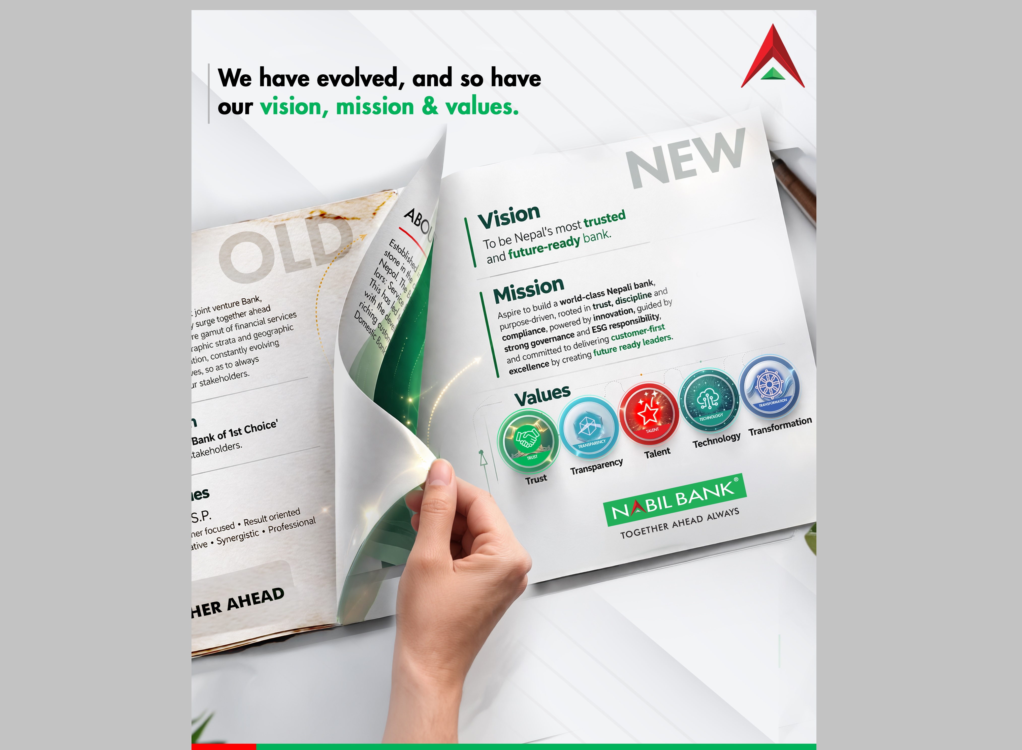 नबिल बैंकले नयाँ वर्ष २०८३ को सुरुवातसँगै चार दशकदेखिका आफ्ना लक्ष्य, उद्देश्य र मूल्यमान्यतालाई पुनर्परिभाषित गरेको छ।