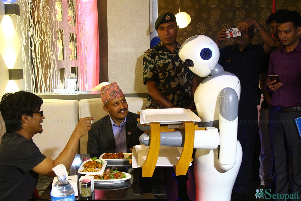 ‘यो रेष्टुरेन्टको उद्देश्य भनेको रोबोटको कामका बारेमा सबैलाई जानकारी गराउनु र रोबोटको केही कमजोरी भए त्यो पनि पत्ता लगाउनु हो’ रविन गिरीले भने ‘यी रोबोट संसारकै एड्भान्स वेटर रोबोट हुन्।’