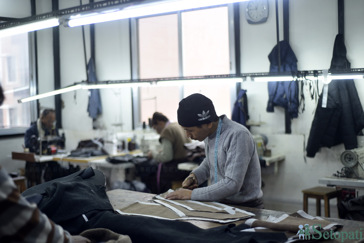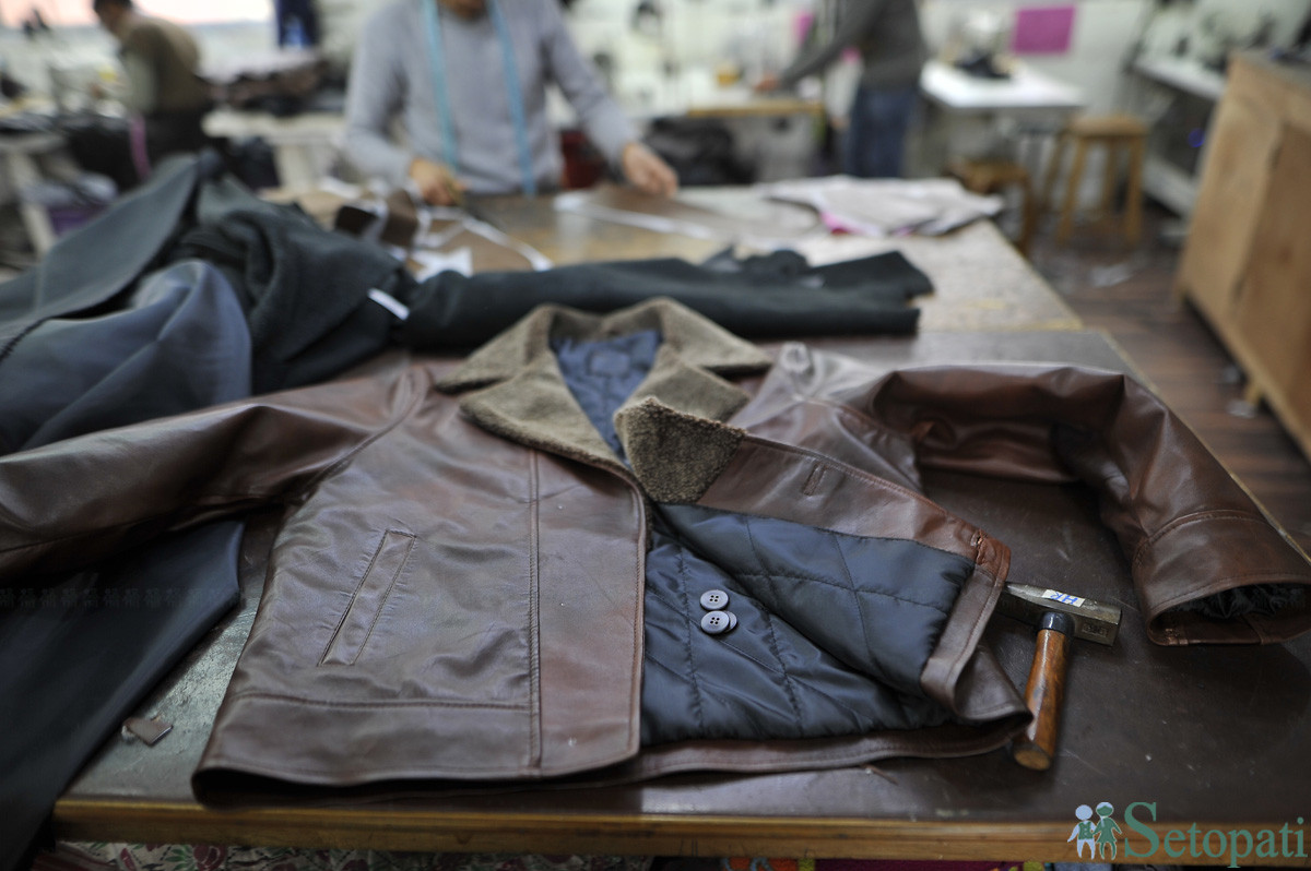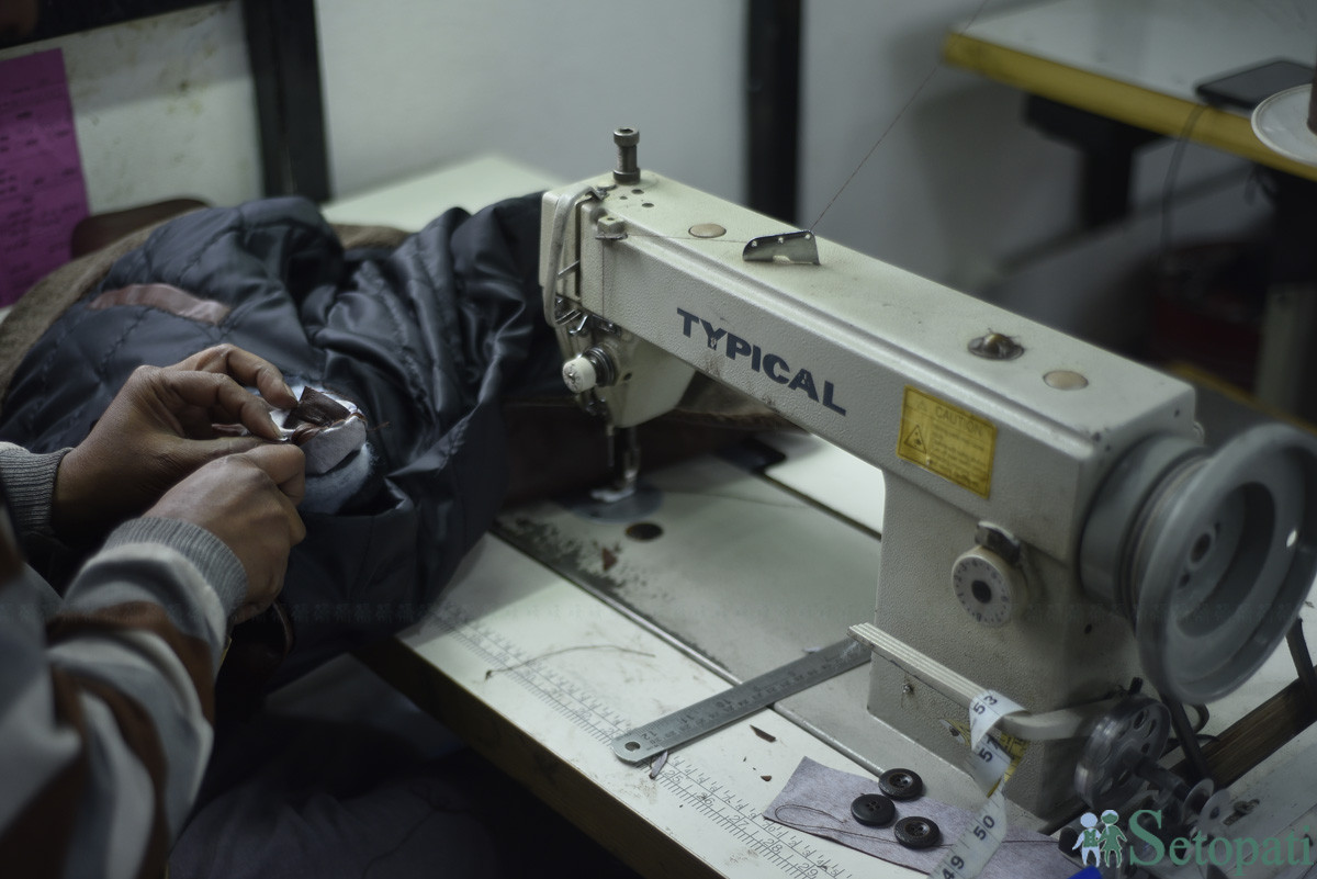 ल्याटिडोमा बन्दै गरेको ज्याकेट । तस्बिरः नारायण महर्जन/सेतोपाटी