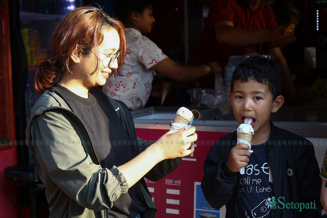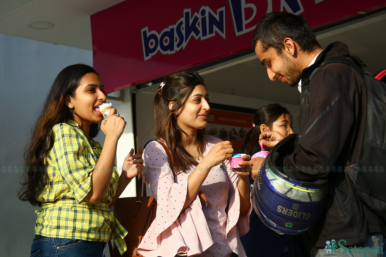 वैशाख आधाआधीमा गर्मीको रापले काठमाडौं रन्किन थालेपछि आइसक्रिम कोन हातमा बोकेका युवाको समूह जताततै देखिन थालेको छ। युवाहरूमाझ आइसक्रिम 'ग्ल्यामरस बेभरेज आइटम' का रूपमा स्थापित भइसकेको छ।