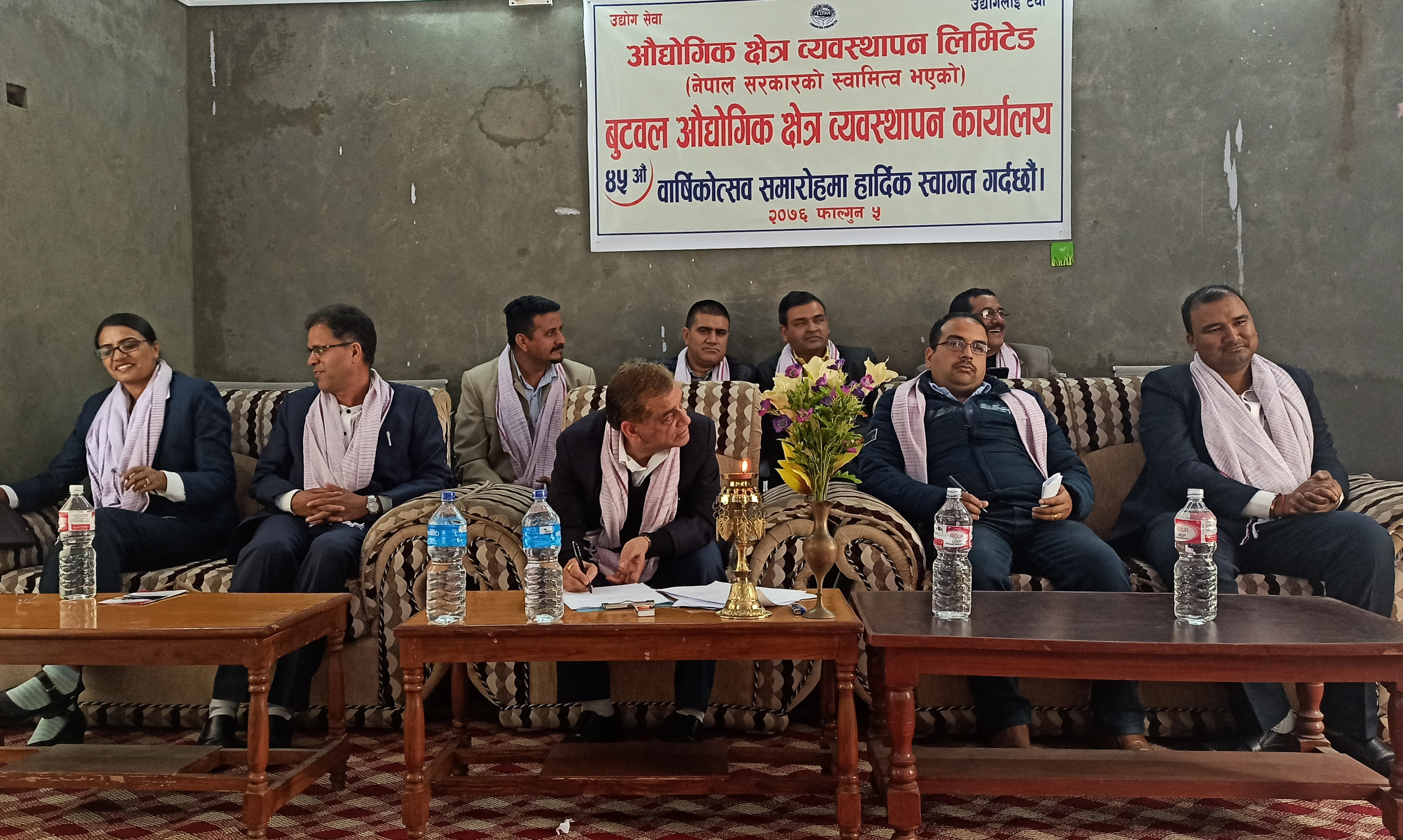 बुटवल औद्योगिक क्षेत्र व्यवस्थापन कार्यालयका प्रमुख निमेश अधिकारीको अध्यक्षतामा सम्पन्न भएको कार्यक्रममा बुटवल उपमहानगरपालिकाका प्रशासकिय प्रमुख चक्रपाणी शर्मा, रुपन्देही उद्योग संघका अध्यक्ष बाबुराम बोहोरा, बुटवल उद्योग वाणिज्य संघका अध्यक्ष खिमबहादुर हमाल, बुटवल औद्योगिक क्षेत्र उद्योग संघका अध्यक्ष हिरामणी भट्टराईलगायतको उपस्थित थियो।