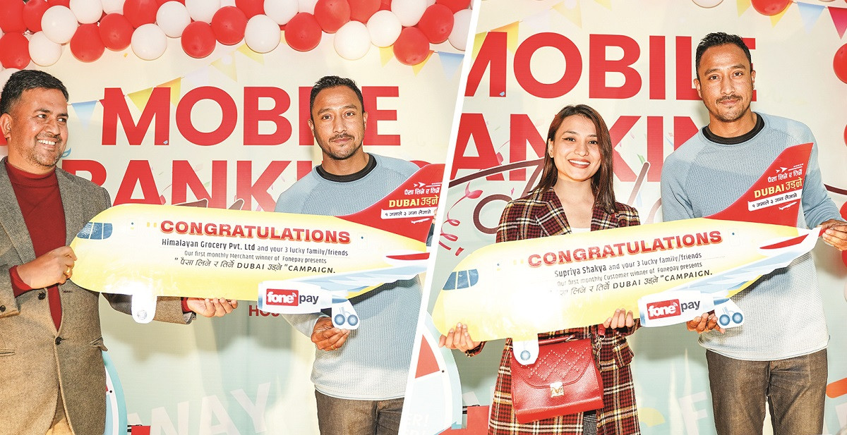 मोबाईल भुक्तानी नेटवर्क फोनपेले ‘पैसा लिने र तिर्ने, दुबई उड्ने’ योजनाका मासिक विजेता घोषणा गरेको छ । दुबई ट्रिपका लागी ग्राहकको तर्फबाट सुप्रिया शाक्य र मर्चेन्टका तर्फबाट हिमालयन किराना पसल बिजेता बन्न सफल भए । वजेता गत बिहीबारको कल कान्तिपुरको लाइभ शोमा लक्की ड्र मार्फत घोषणा गरिएको थियो । दुबई ट्रिप जित्ने व्यक्तिले थप तीनजना व्यक्तिलाई पनि आफुसँग लैजान पाउनेछन् । विजेता २ जनवरीदेखि १ फब्रुअरीसम्म क्युआर मार्फत भुक्तानी गर्ने ग्राहक र मर्चेन्ट मध्येबाट छानिएका हुन् ।