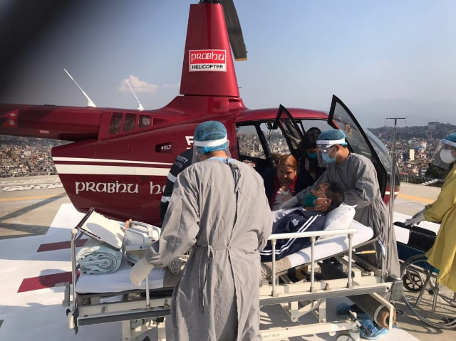 चैत ११ बाट लकडाउन सुरु भएसँगै छोटो तथा लामो दुरिको यातायात र हवाईजहाज उडान बन्द छ्न्। यो प्रतिकुल समयमा बिरामीहरुको उद्दारमा हेलिकप्टरको भुमिका महत्वपूर्ण भएको छ।