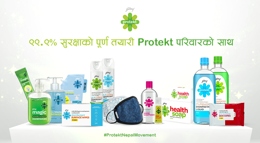 'नयाँ परिस्थितिमा पनि सुरक्षा र सरसफाइको आवश्यकता लाई पुरा गर्न गोदरेज कन्ज्युमर प्रोडक्ट्स लिमिटेड (जीसीपीएल) को गोदरेज प्रोटेक्ट शृंखला बजारमा ल्याएको छ' कम्पनीले भनेको छ।