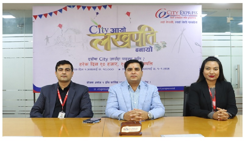 सिटी एक्सप्रेस मनी ट्रान्सफरले दशैं, तिहार र छठ लक्षित गर्दै लगातार ६१ दिनसम्म चल्ने 'सिटी आयो लखपति बनायो' उपहार योजना घोषणा गरेको छ।