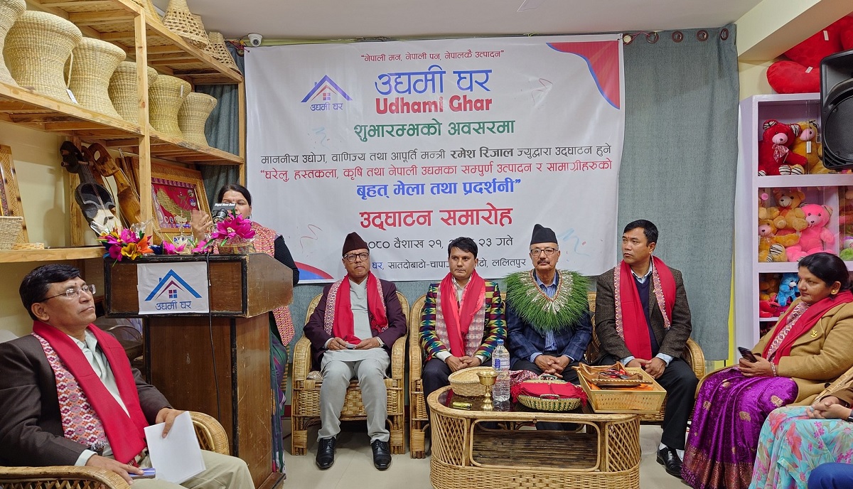 यो 'सुपर मार्केट,' मन्त्री रिजालले उद्यमी घरलाई लक्षित गर्दै भने, 'यहाँ उद्यमीले उत्पादन गरेका सबै प्रकारका सामान पाइन्छ।'